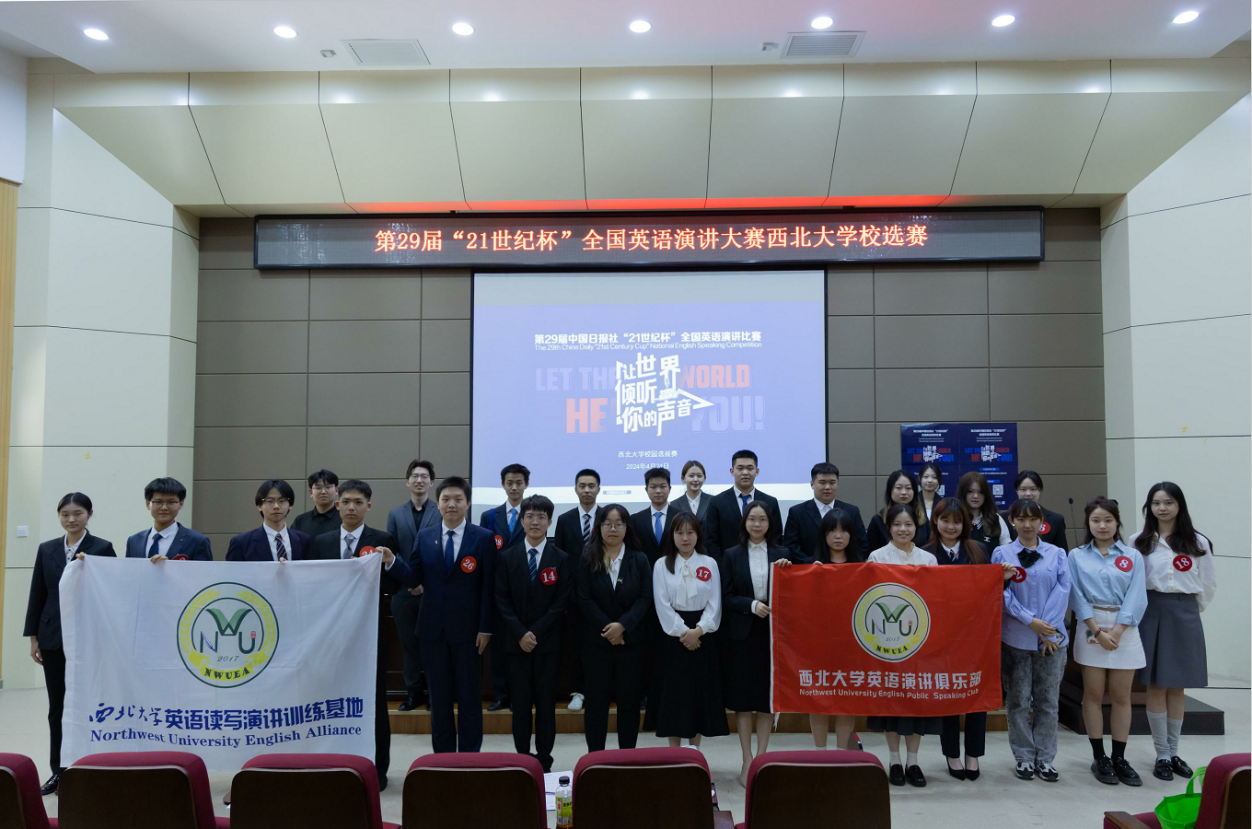 On April 24, 2024, the 29th “21st Century Cup” National English Speech Contest Northwest University Campus Selection Round, organized by the School of Foreign Languages at Northwest University, successfully concluded. The final round of this selection contest was judged by a team of speech and debate instructors from the English Reading, Writing, and Speaking Training Base at Northwest University, as well as past winners of the national competition. A total of 27 contestants from 10 different departments participated. During the competition, the contestants, from the perspective of Generation Z, shared their stories around the theme “The Revival of Traditional Culture”, witnessing the changes and development of Chinese traditional culture.
