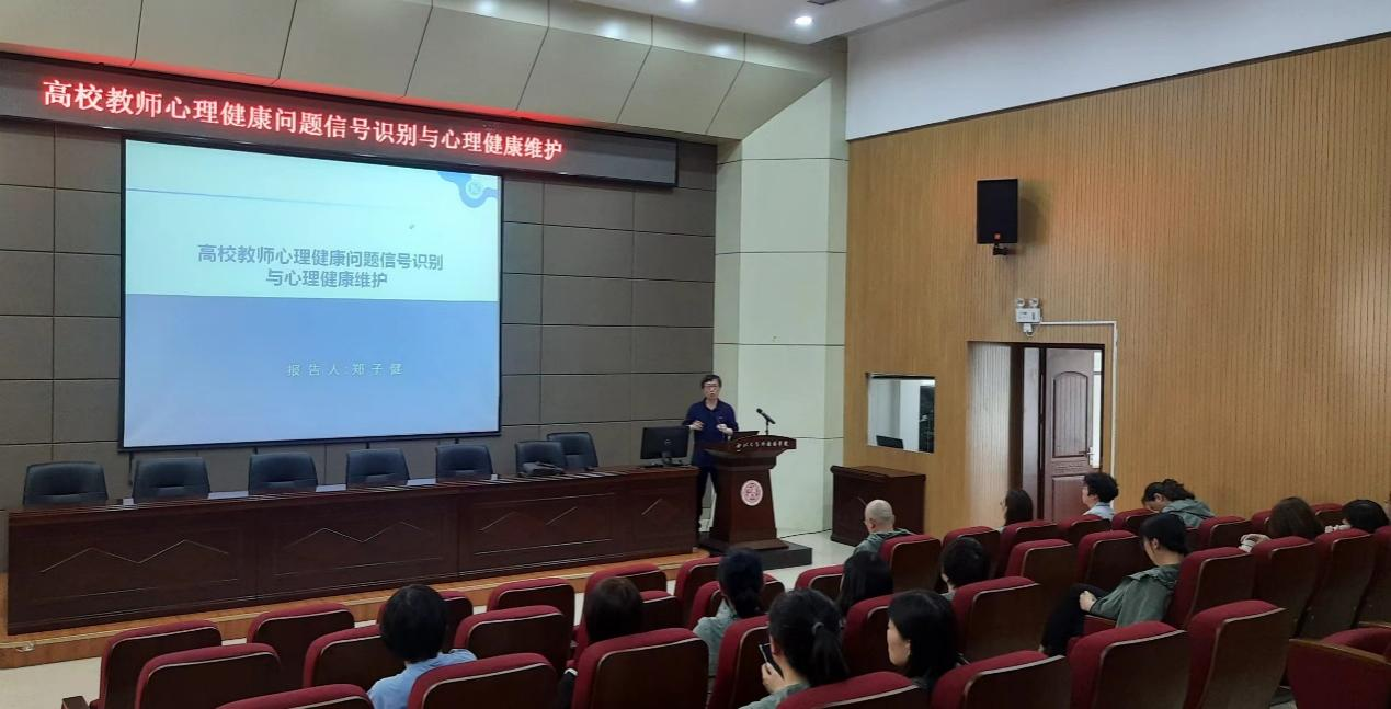 To support the mental health of our faculty and staff and enhance their resilience to stress, our school organized a lecture on April 17, 2024, in the Second Classroom Auditorium. The lecture, titled “Identifying Psychological Issues and Maintaining Mental Health for University Teachers”, was delivered by Professor Zheng Zijian, a psychology professor at the School of Public Administration, Northwest University, and a graduate advisor for applied psychology students. More than 20 faculty and staff members attended the event.