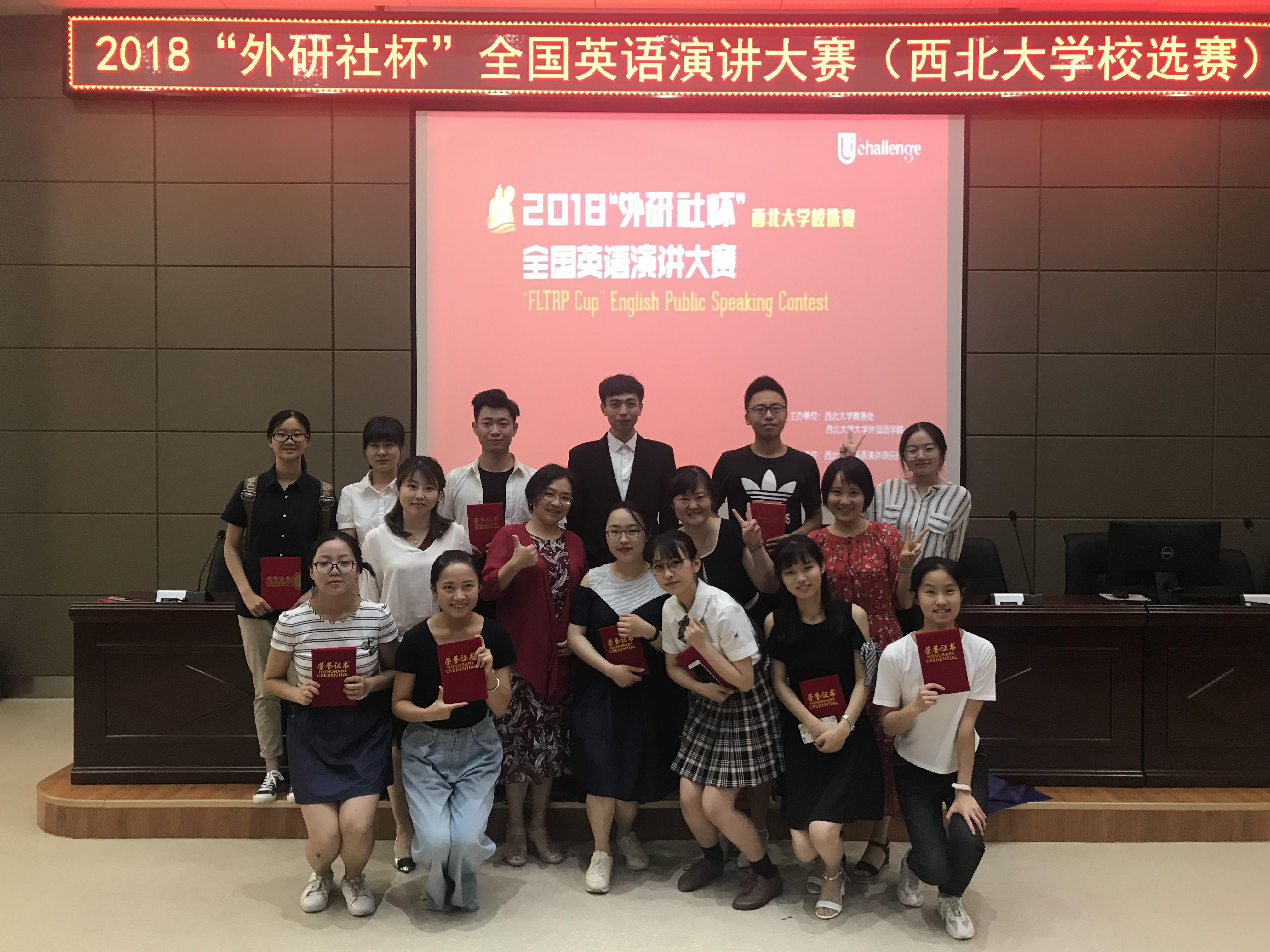 6月6日,由我校教务处和外国语学院主办,西北大学英语演讲俱乐部承办的2018“外研社杯”全国英语演讲大赛西北大学选拔赛在我校长安校区成功举办。来自外语学院、经管学院、公管学院、化工学院等13个院系的选手同场竞技,展现了我校学子良好的英语水平,缜密的思维能力和开阔的国际视野。