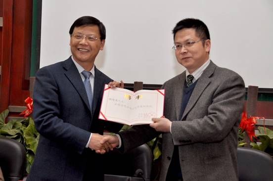 校长办公室主任雷忠鹏,校人事处副处长孙录见,外国语学院党政领导、全体教工以及学生代表参加了聘任仪式。