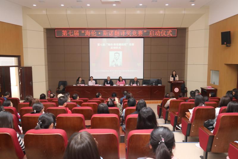 日下午,第七届“海伦•斯诺翻译奖”竞赛的启动仪式在我院第二课堂报告厅举行。来自陕西省翻译协会、陕西师范大学、长安大学、西北政法大学、西安文理学院、西安培华学院、西安翻译学院的嘉宾代表20余人参加了仪式。我院党委书记王军、胡宗锋院长和任海棠副院长出席了仪式。参加仪式的还有我院院长助理罗宾,教师代表高敏娜、杨一铎、苏蕊、洪玉蓉、郑洁、李基亚老师,以及硕士研究生和本科生学生代表。启动仪式由我院院长助理、陕西省斯诺研究中心秘书长陈娟老师主持。