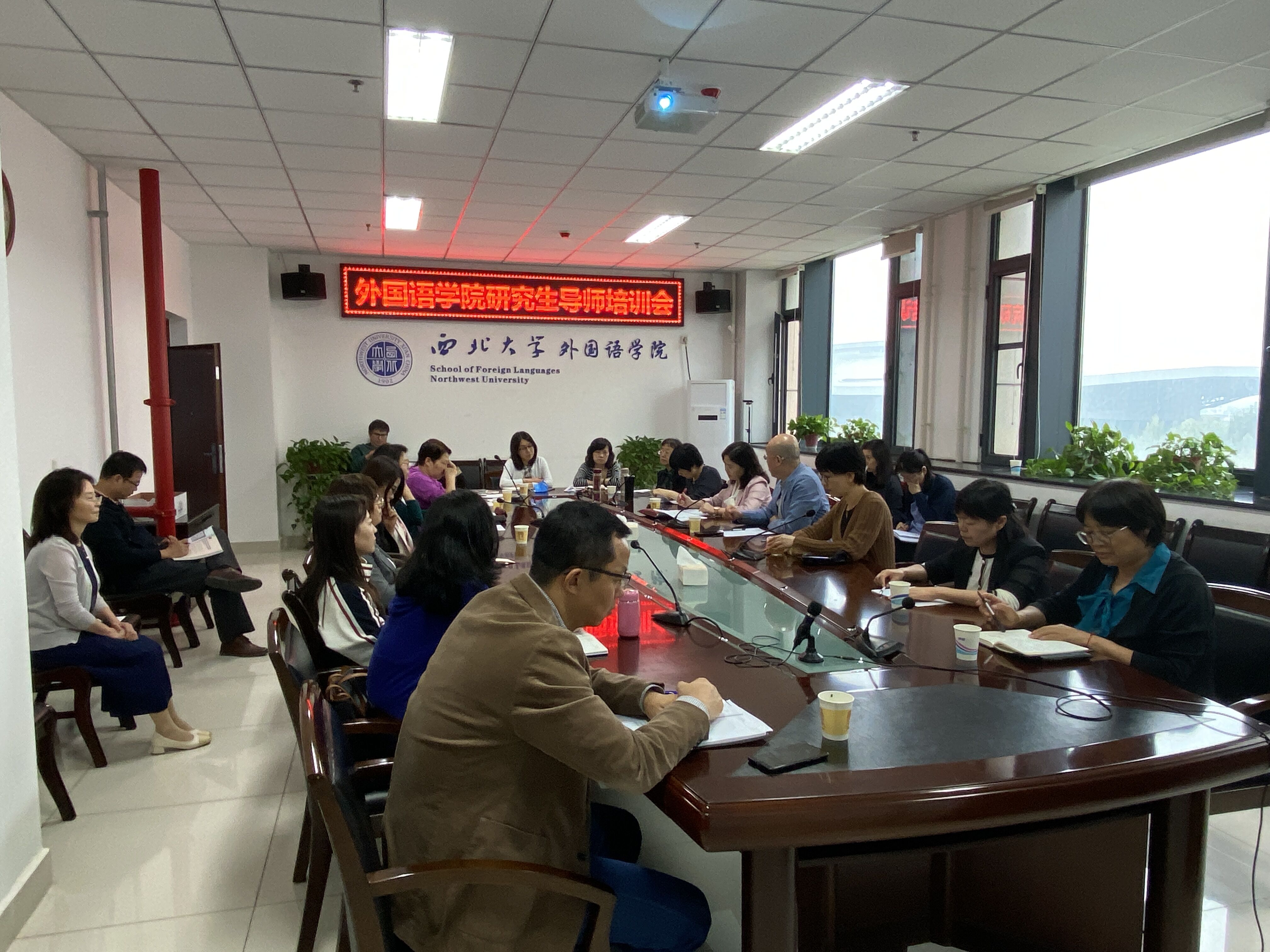 为进一步加强我院导师队伍建设,全面落实研究生导师立德树人职责,学院于9月21日下午在西学楼五层会议室举办新学期研究生导师培训会。院党委书记王军以及全体硕士生导师参会,会议由院长曹若男主持。