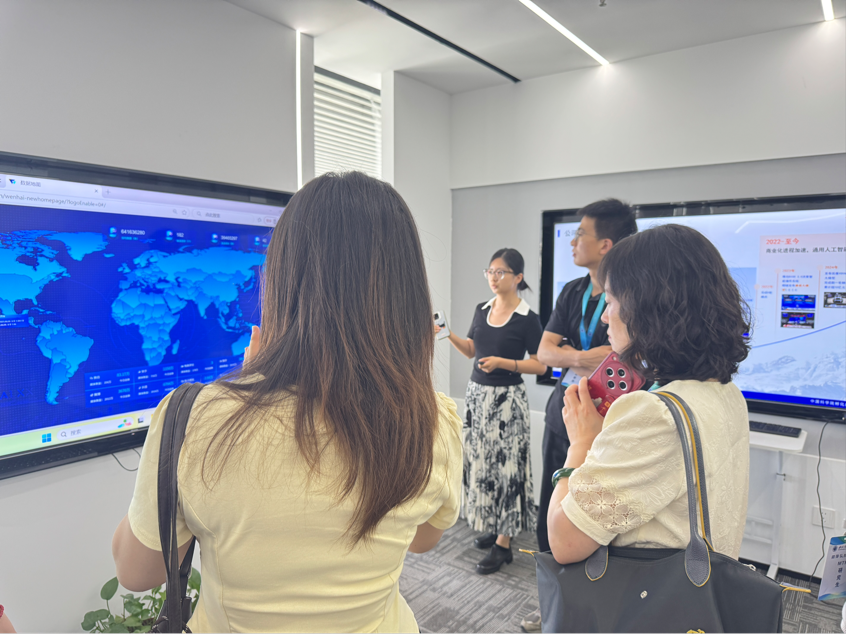 西安中科闻歌副总经理马昕热情接待师生,引导参观并介绍了公司发展历程、业务布局、核心产品、智库团队及智能化服务体系等情况。