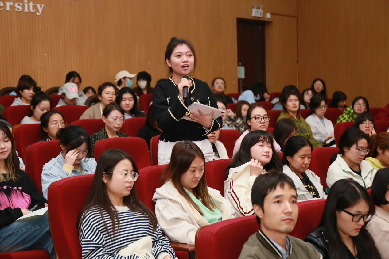 会上,贺爱军与现场师生就翻译跨学科研究的相关问题展开了研讨与交流。本次讲座增强了师生对翻译跨学科研究的认识和理解,激活了师生对翻译跨学科研究的交流和讨论。
