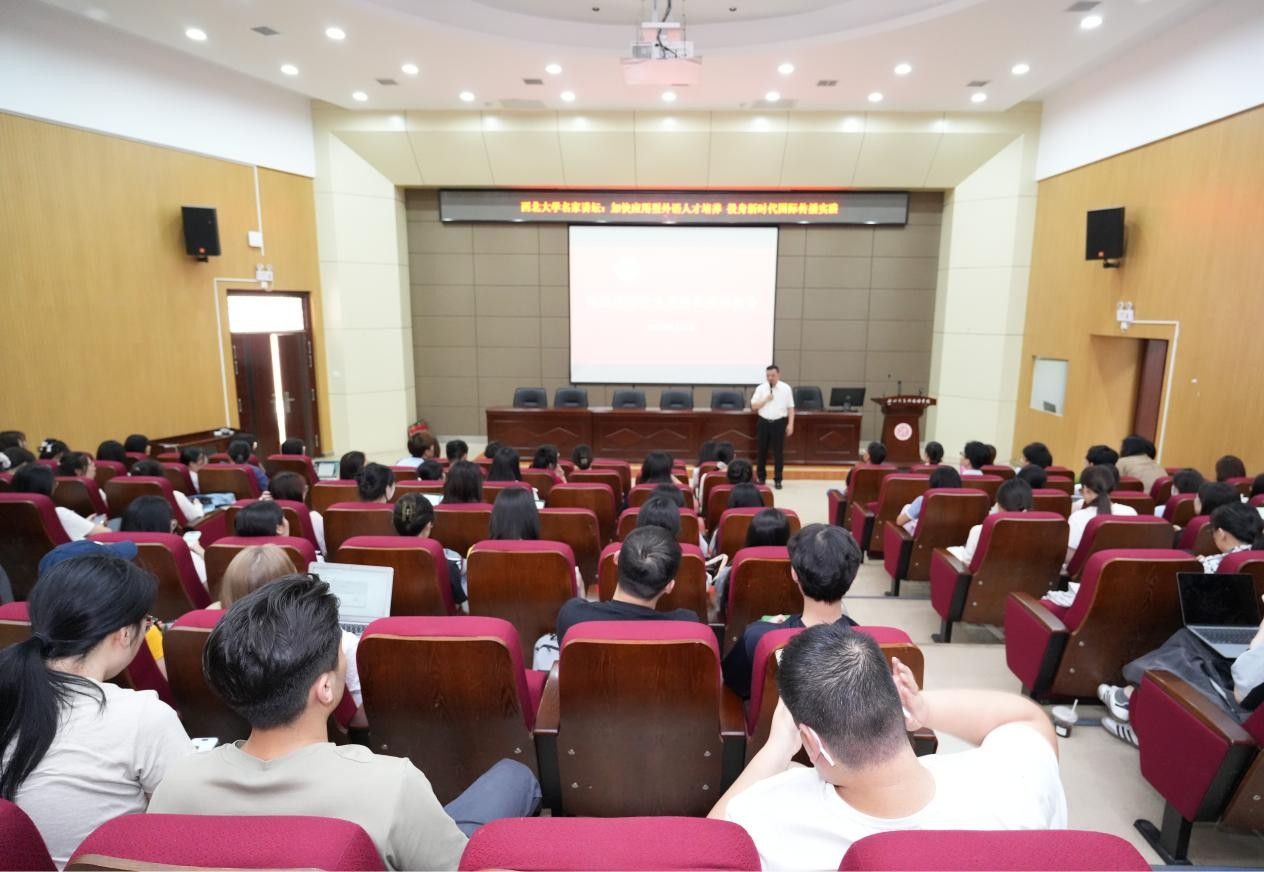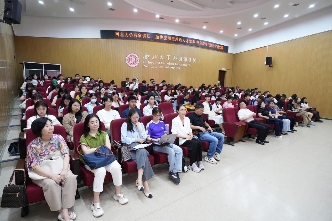 2025年5月16日下午,中国翻译协会副会长、中国外文局翻译院院长黄玉龙做客西北大学“名家讲坛”,为师生作了题为《加快应用型外语人才培养 投身新时代国际传播实践》的讲座。讲座由外国语学院副院长苏蕊主持。校内外一百二十余名师生聆听了讲座。