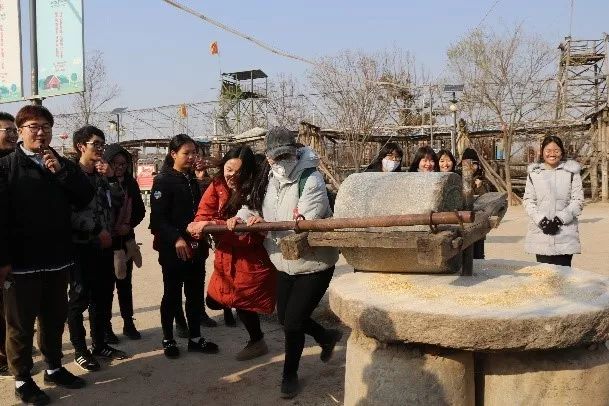 下午同学们在景区内体验了许多趣味活动,例如走钢索,过吊桥,掷铁饼,剥玉米,磨粮食等。同学们对关中的农耕文化有了更深刻的了解。