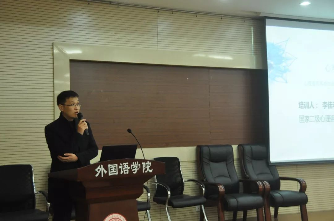 周三的下午,在四号楼高级口译室,我院心理协会邀请西北大学心理中心的李佳老师做心理讲座。本次讲座的主题为心理委员是什么,做什么,怎么做。