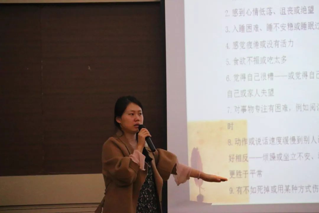 其次,李老师给大家仔细介绍了适应的概念,角度及分类。期间还穿插了人际交往的小游戏,以便增强大家的体验感以及对所讲内容的理解。然后,针对各种问题,李老师又为同学们介绍了具体解决方案。对于大一新生,李老师提出的建议是小步子走,不要心急,开学的六个月就是用来适应新环境、新学习方式的。每天的任务量不要太大,完成到刚刚好就可以了。
