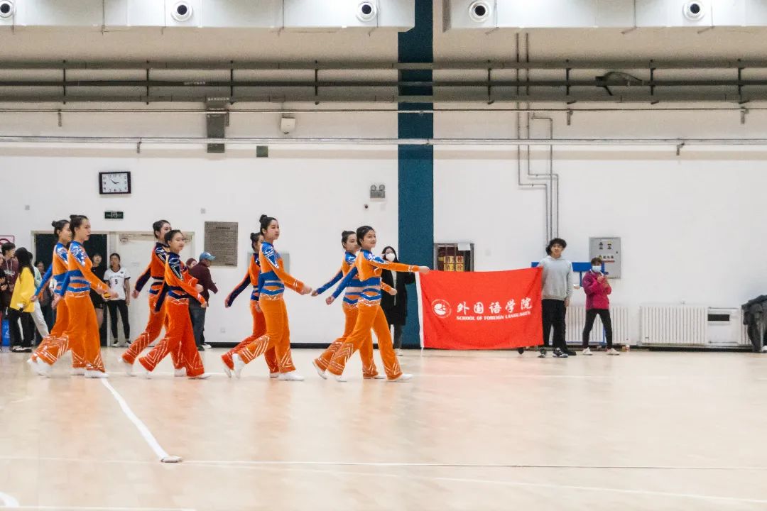 “踏晨露,披斜阳,风风雨雨又何妨!”这是她们响亮的口号。随着主持人的报幕,队员们昂首挺胸,大步向前,走向灯光闪耀的赛场。音乐响起,同学们神采奕奕,动作优美整齐、张驰有度,举手投足间,皆为力与美的完美结合。灵动的身形,绚丽的舞姿,展现了外院学子热情如火的青春和蓬勃的活力。