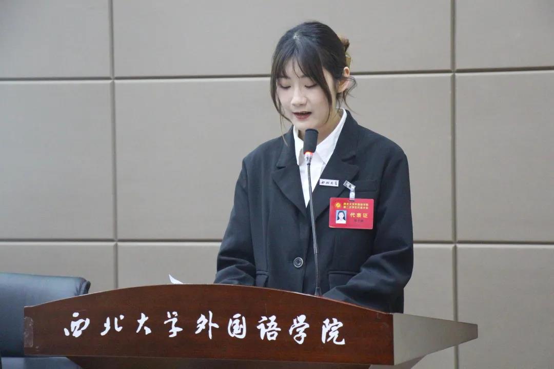 随后,牛彦翔同学明确讲述《外国语学院第二次学生代表大会选举办法》。总监票人王兰同学主持大会选举。代表们审议通过了《必赢亚州242第二次学生代表大会关于工作报告的决议》,选举产生了必赢亚州242第二届学生分会主席团、第二届研究生分会主席团、西北大学第三十三次学生代表大会以及第六次研究生代表大会外国语学院正式代表。必赢亚州242第二次学生代表大会的召开是我院学生政治生活的大事,也是院学生分会、研究生分会总结经验、改革创新的重要契机。