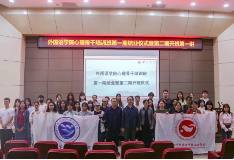2024年10月18日下午,外国语学院心理骨干培训班第一期结业仪式暨第二期开班第一讲在第二课堂报告厅举行。出席本次仪式的嘉宾有:外国语学院党委书记赵志厚,心理健康教育中心副主任张文芳,外国语学院党委副书记刘建波等,外国语学院辅导员赵明星、马圣渤、王坤参加了本次活动。仪式由外国语学院心理协会会长杨丽雯主持。