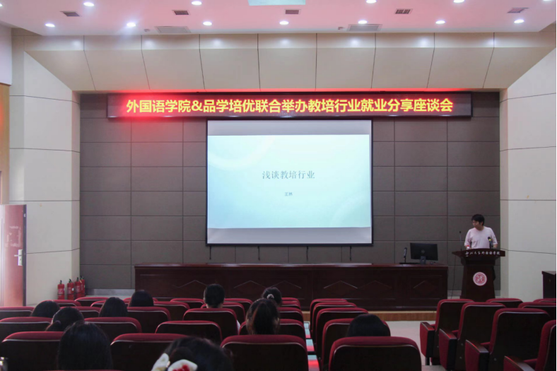 9月27日下午2点30分,学院与品学培优联合举办的教培行业就业分享座谈会在外国语学院第二课堂报告厅顺利举办。本次座谈会面向学院全体学生,由品学培优王林老师主讲。