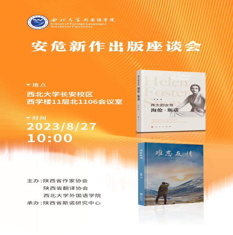 2023年8月27日上午,著名翻译家、作家、陕西省斯诺研究中心创始人安危先生两部新作《伟大的女性——海伦·斯诺》和《难忘友情》出版座谈会在西北大学举行。