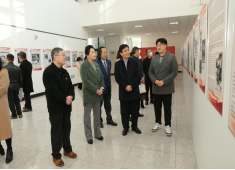 校党委书记王亚杰、校长郭立宏陪同调研组一行参观展览