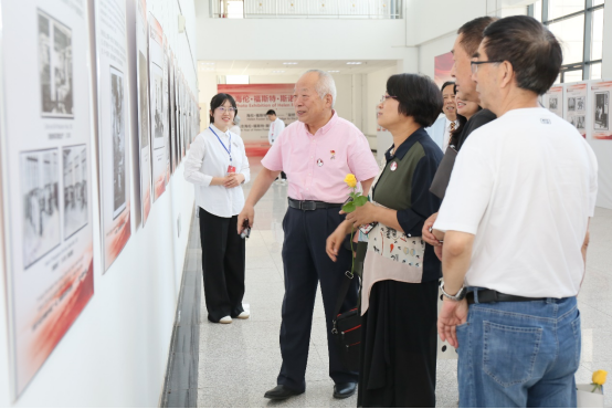 剪彩结束后,与会人员在西学楼一层大厅参观展览,展览分为海伦在上海、海伦与一二·九运动、海伦出访西安、海伦在延安、海伦与工业合作社、海伦返美、海伦的精神遗产等几个主要部分。图片展用大量照片及史料向来者展示了海伦·福斯特·斯诺的“架桥”人生。在参观中,由外国语学院“RED记忆”讲解队成员通过讲解带领大家走进了海伦·福斯特·斯诺的峥嵘岁月,了解了这位伟大女性的不凡一生。