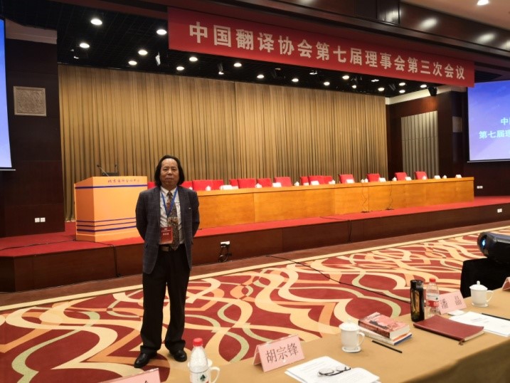 陕西省翻译协会主席、我院胡宗锋教授和高敏娜秘书长代表陕西省翻译协会出席了在北京召开的“中国翻译协会第七届理事会第三次会议”。会前,胡宗锋院长向中国翻译协会常务副会长黄友义赠送了协会SLOT计划(陕西文学世界推广计划)新近成果贾平凹作品《土门》(英译)以及《罗宾博士看陕西》和《探究中国》等译作、著作。