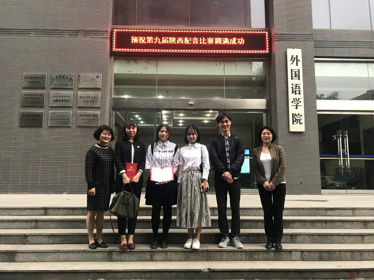 2018年4月22日,我院日语系2016级学生张慧钰、杜华嵘、崔善圭(韩)在由西安日本语教师会主办、西安交通大学承办的第九届陕西日语配音大赛中获得三等奖。