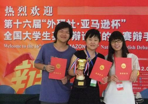 7月15日至20日,由团中央学校部、全国学联秘书处、北京外国语大学联合主办的第十六届“外研社•亚马逊杯”全国大学生英语辩论赛在京举行。在我院青年教师宣菁的指导下,我校经济管理学院2010级魏正刚和文学院2009级段蓓蕾获得全国总决赛一等奖,这是我校参加该项赛事以来获得的最好成绩。