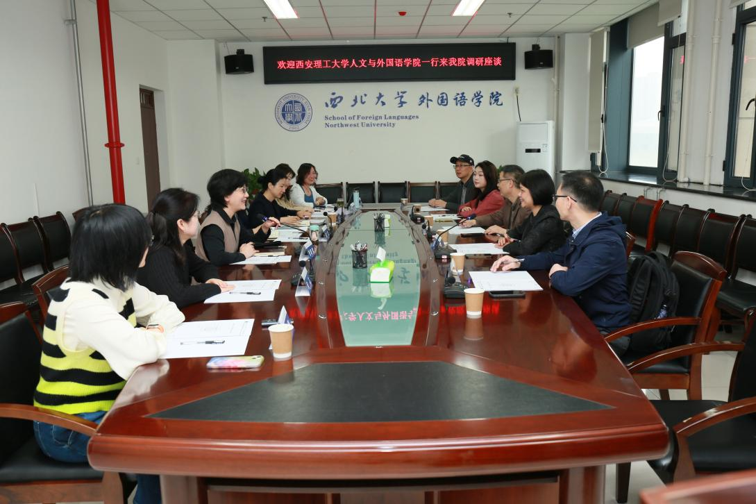 2024年4月10日上午,西安理工大学人文与外国语学院院长张洁带队到访我院调研座谈。会议由院长曹若男主持,学院党政班子成员以及教师代表参加座谈。