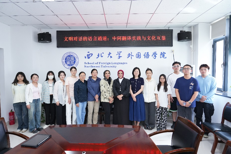 在问答环节,师生就中国文学在阿拉伯世界的译介、机器翻译在文学类文本中的应用、中阿文明交流互鉴等问题进行提问。娜希德教授耐心作答,并提出一些建设性意见,为师生未来的科研工作提供参考。本次讲座加深了我院师生对阿拉伯语言文化的了解,为中阿文明交流的学术研究拓宽了思路,通过学术互动深化了中阿文化认知互信。