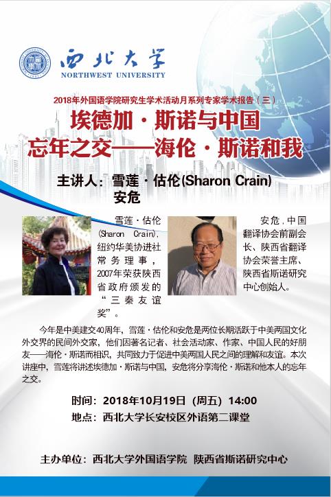 学院定于2018年10月19日(周五)下午14:00召开《埃德加·斯诺与中国忘年之交——海伦·斯诺和我》学术报告,请全院教职工准时参加。