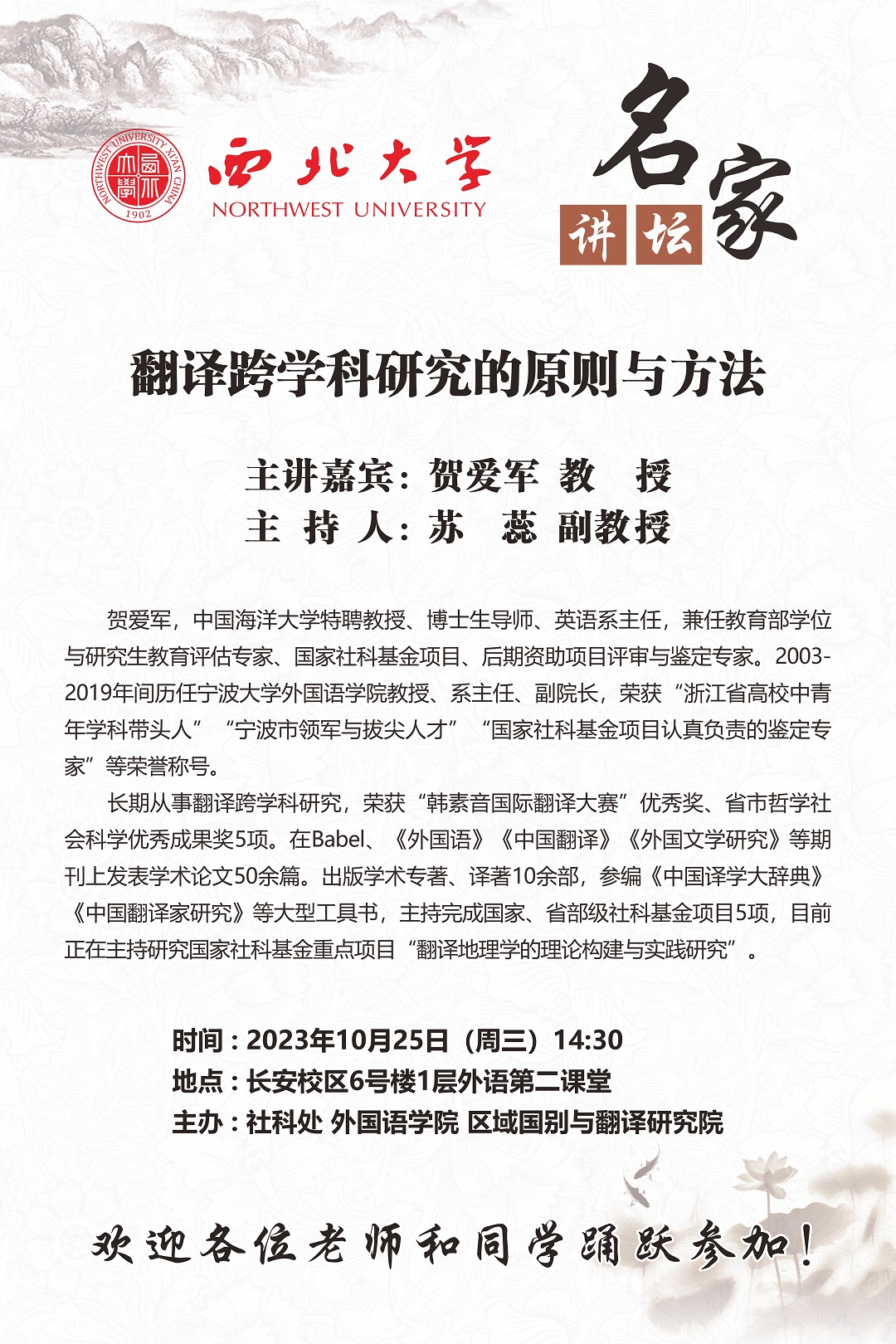 必赢亚州242名家讲座系列之十八——翻译跨学科研究的原则与方法