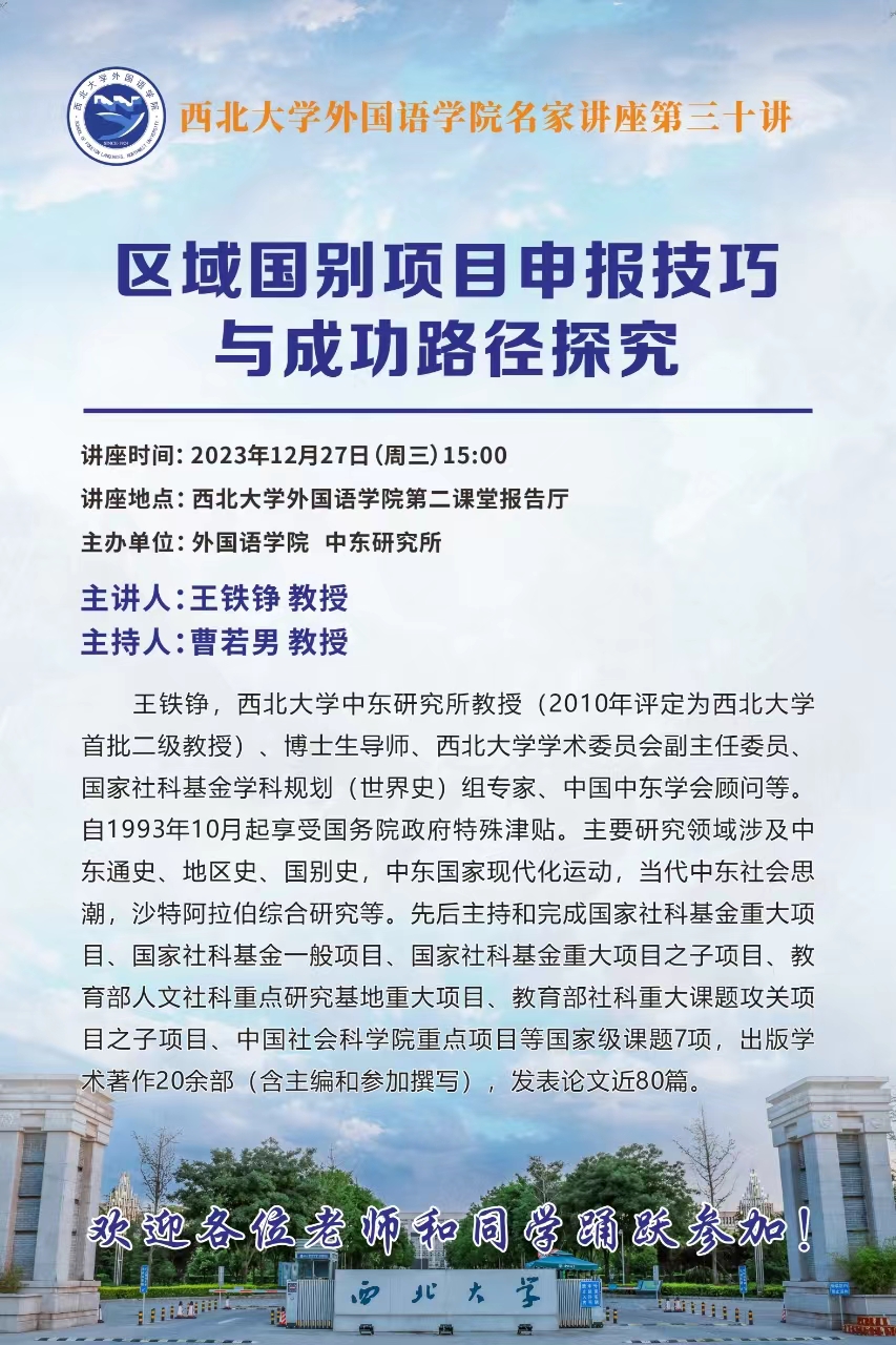 下一篇:西北大学名家讲坛:区域国别研究的定位、研究思路与方法
