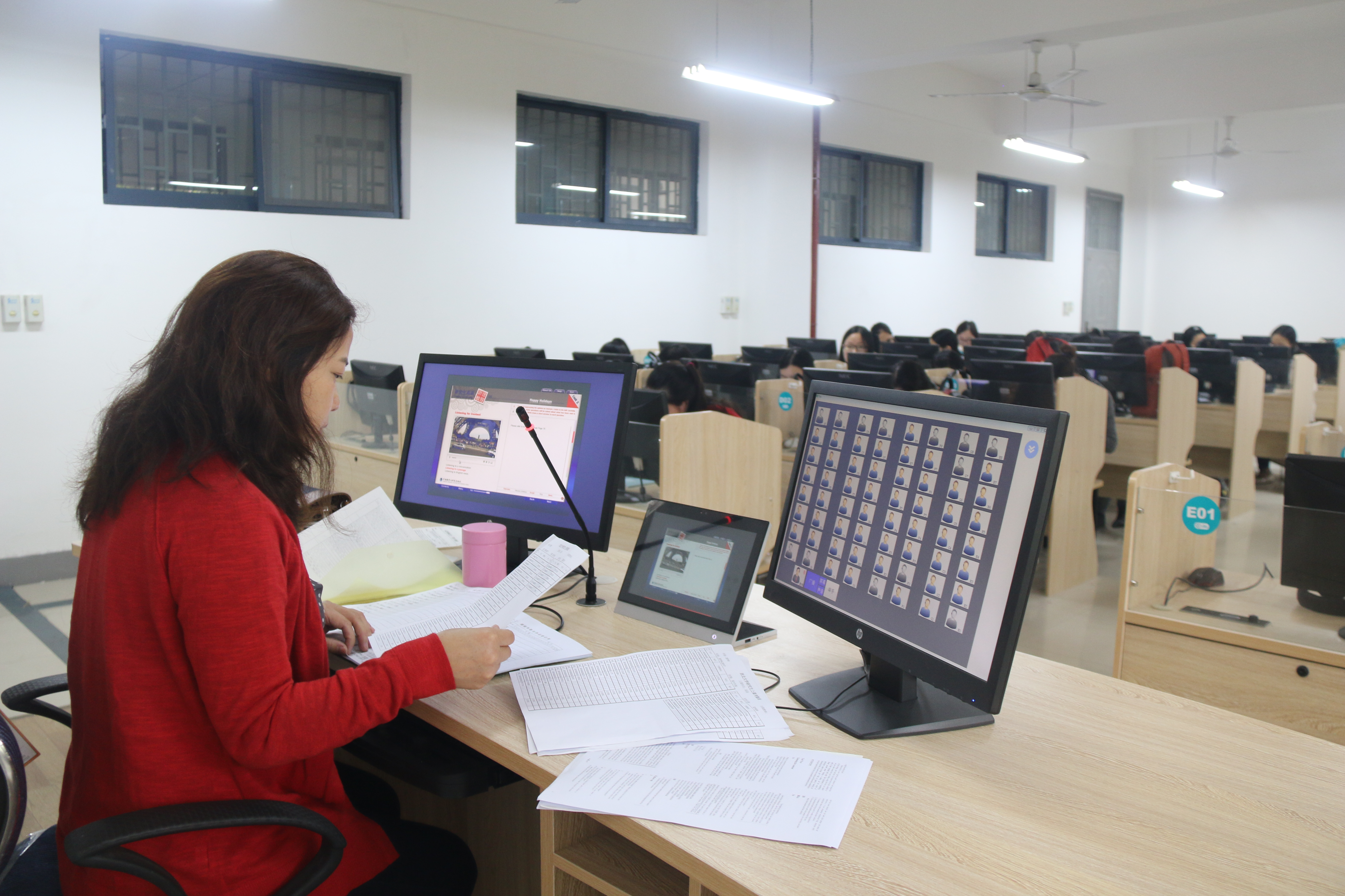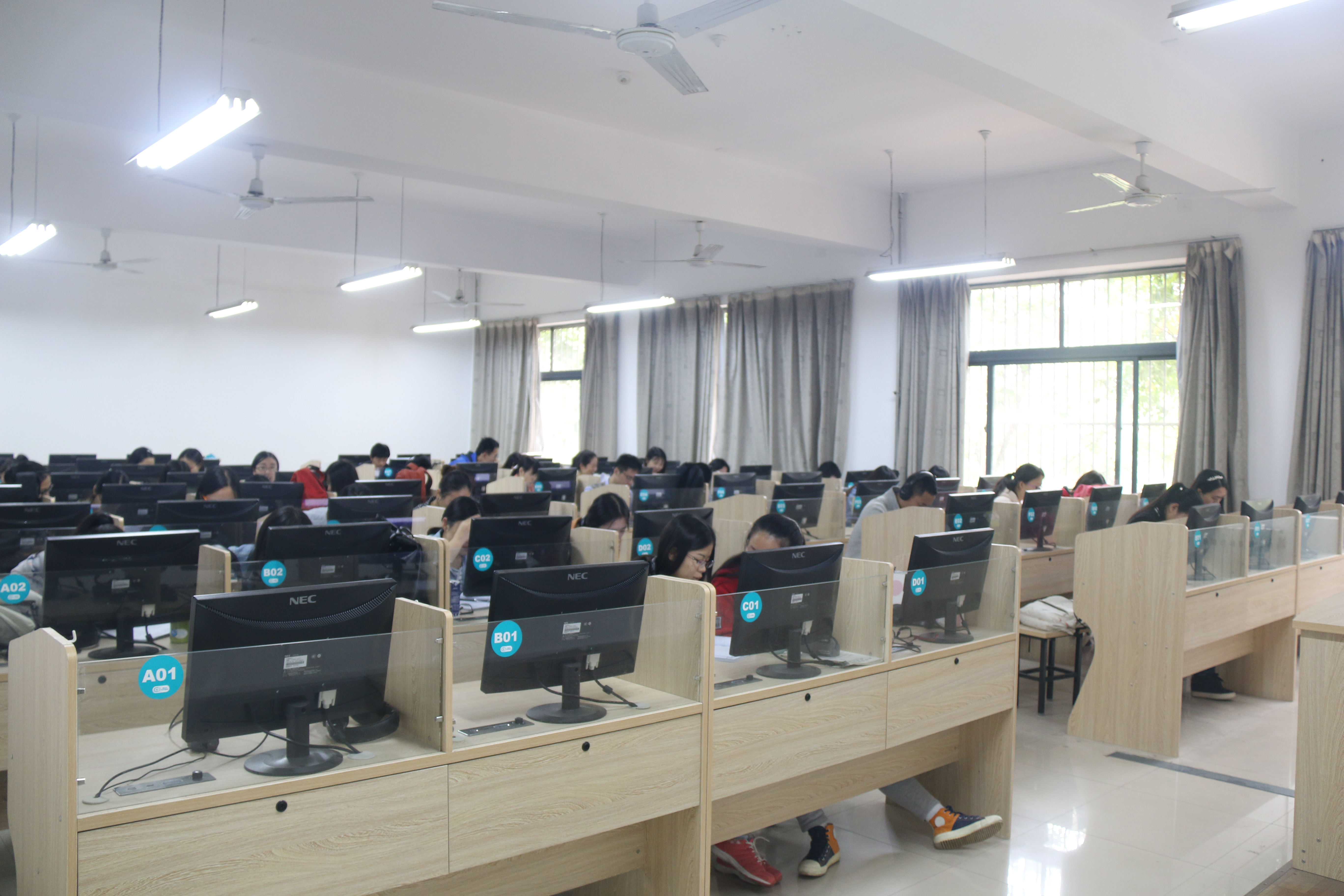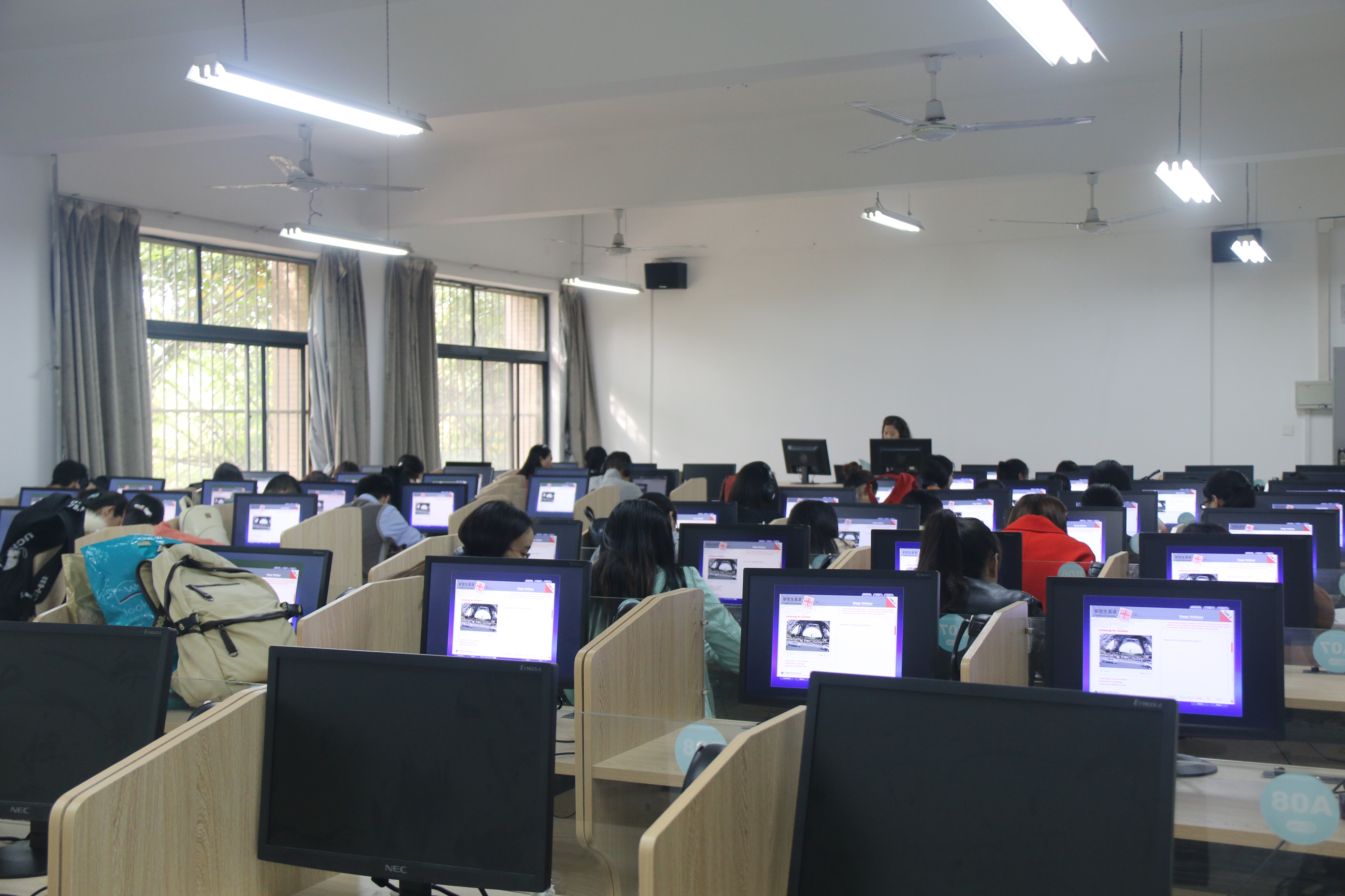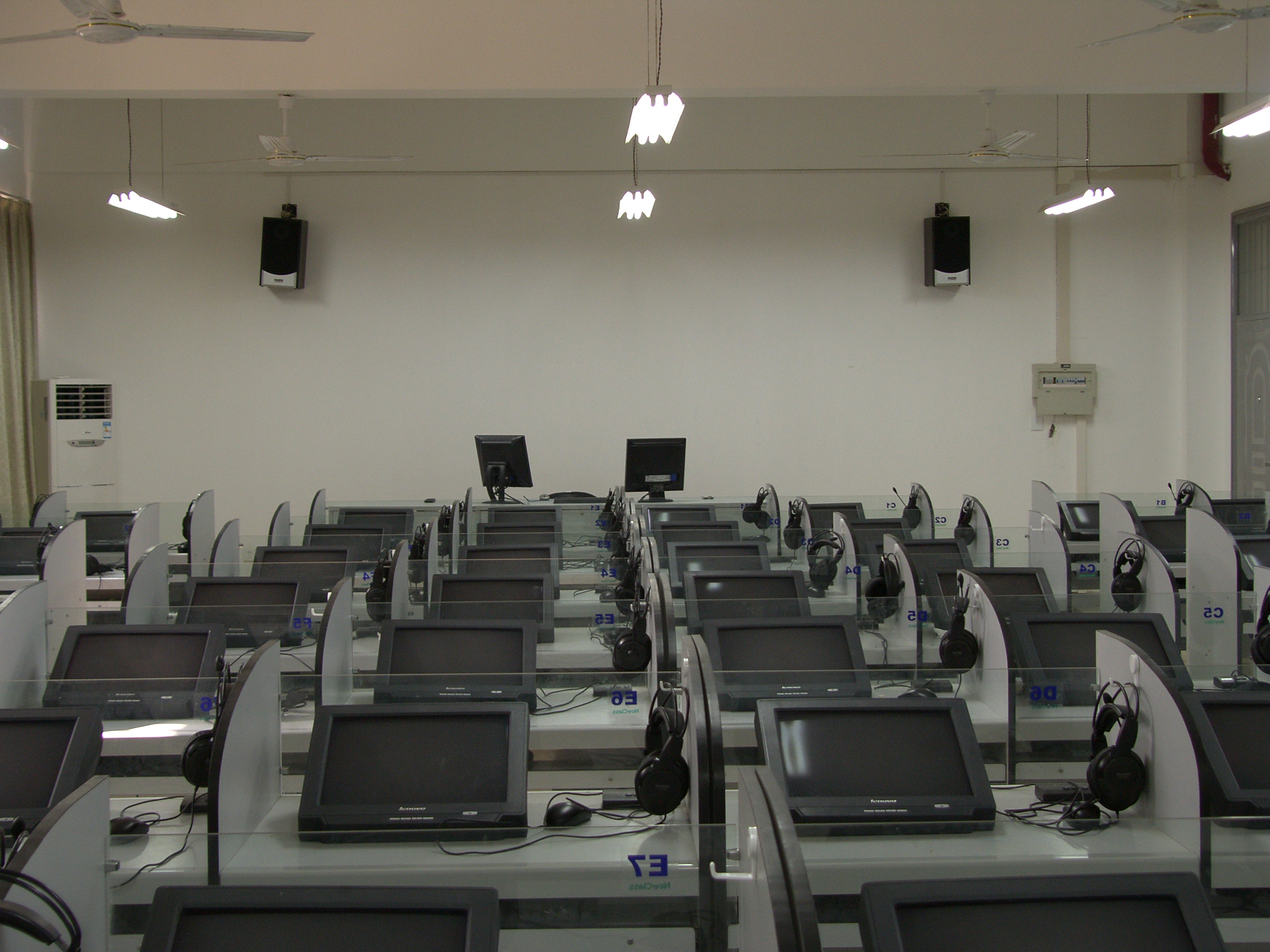 公共语言实验室承担全校7000多名学生的公共听力课程,以及1000多名非英语专业硕士生的听说课程。